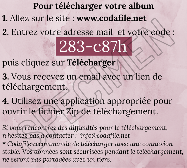 Cette carte de téléchargement est l'équivalent du CD mais en format numérique. Elle vous permettra de télécharger les fichiers MP3 de l'album et les écouter sur tous vos appareils numériques permettant de lire des MP3.